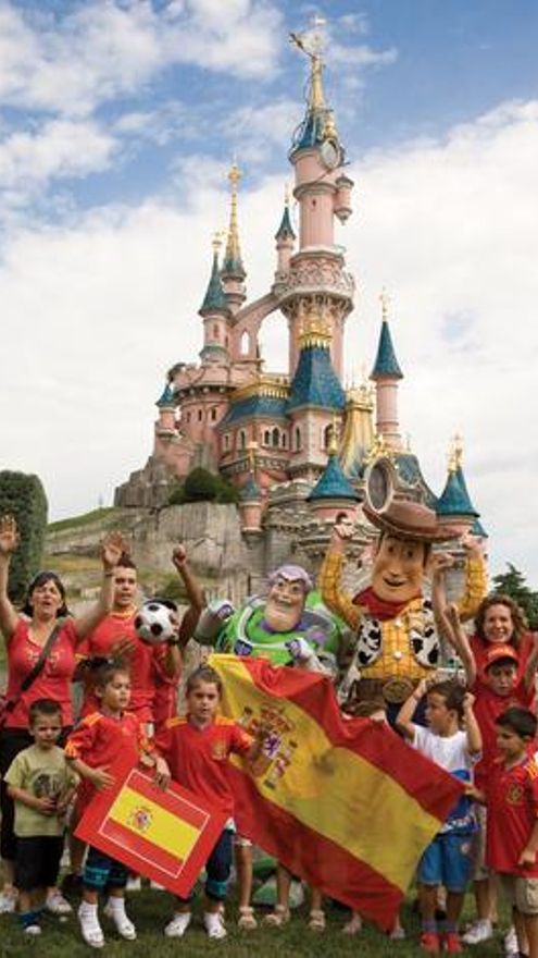 Desde todos los puntos del mundo, la afición española vive con entusiasmo las últimas horas antes de la gran final. También en Disneyland Paris, Buzz y Woody -que llegaran a las pantallas españolas el 21 de julio con el estreno de Toy Story 3-, animan a La Roja.
