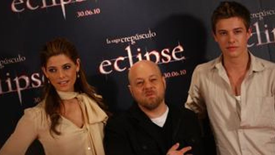 'Eclipse', la tercera entrega de la saga 'Crepúsculo', llega este miércoles a los cines españoles. Para presentar el film, su director, David Slade, y dos de los personajes secundarios, Ashley Greene (Alice Cullen) y Xavier Samuel (Riley) visitan en Madrid.