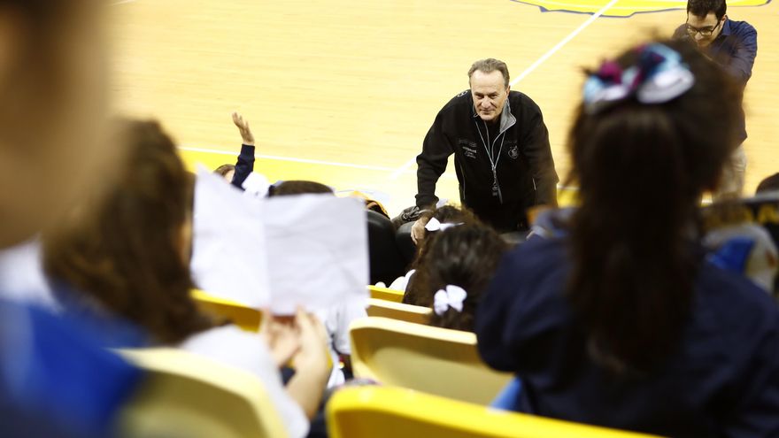 Tras una semana preparando la visita y conociendo los pormenores del baloncesto en las aulas, tuvieron la oportunidad de encontrarse por primera vez cara a cara con sus gigantes ídolos del equipo grancanario. Aunque el primer protagonista con el que se toparon los pequeños fue Aíto García Reneses, al que los alumnos recibieron con una gran ovación y coreando su nombre. El entrenador amarillo devolvió este buen gesto acercándose a los niños para responder varias de sus preguntas antes de someterse a la rueda de prensa previa al encuentro ante Movistar Estudiantes.