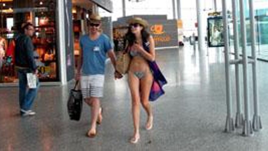 Si los ciudadanos que transitan por la T4 del Aeropuerto de Barajas a lo largo de esta semana se cruzan con una pareja en atuendo playero que discute por temor a perder un avión, se echa crema para el sol o baila sobre una toalla no debe sorprenderse, o sí. Se trata de una original iniciativa lanzada por el Patronato de Turismo de Fuerteventura y que tratará de captar turistas para la isla en siete aeropuertos españoles durante toda esta semana.