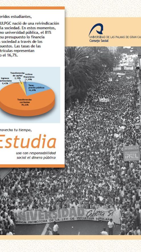 El Consejo Social de la Universidad de Las Palmas de Gran Canaria (ULPGC) ha lanzado un folleto informativo con el que se pretende mentalizar a los nuevos estudiantes de la institución académica sobre los ingresos públicos que recibe la Universidad para desarrollar su labor docente e investigadora.
