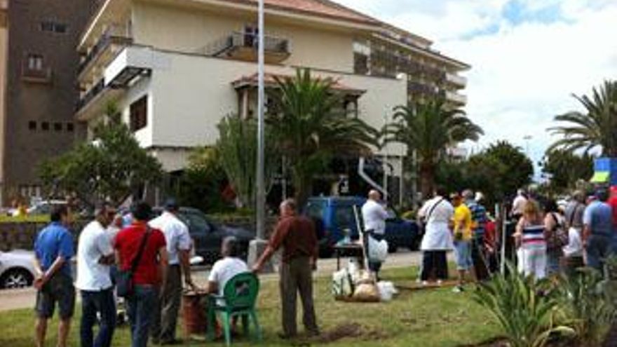 En torno a una quincena de trabajadores se ha instalado justo enfrente del acceso al hotel, mostrando pancartas y dejándose notar al ritmo de batucada improvisada, con palos golpeando bidones oxidados. La Policía Nacional mantiene una discreta presencia, con una patrulla de la Comisaría de Maspalomas, mientras los turistas que transitan camino de la playa observan con curiosidad la estampa reivindicativa.