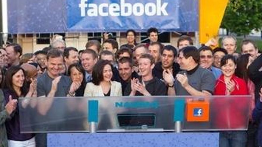 Mark Zuckerberg toca la campana del Nasdaq el día del debut de Facebook