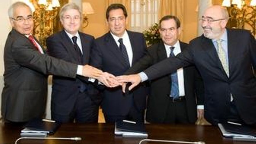 Los presidentes de Banca Cívica, constituida por Caja Navarra, CajaCanarias y Caja de Burgos, y el presidente de Cajasol, Antonio Pulido, han firmado en Sevilla un protocolo de integración que, una vez materializado en las próximas semanas, posicionará a la entidad resultante como la sexta caja nacional, en una operación que podría requerir de un máximo de 1.000 millones de euros, el límite máximo que Banca Cívica podría solicitar al FROB.