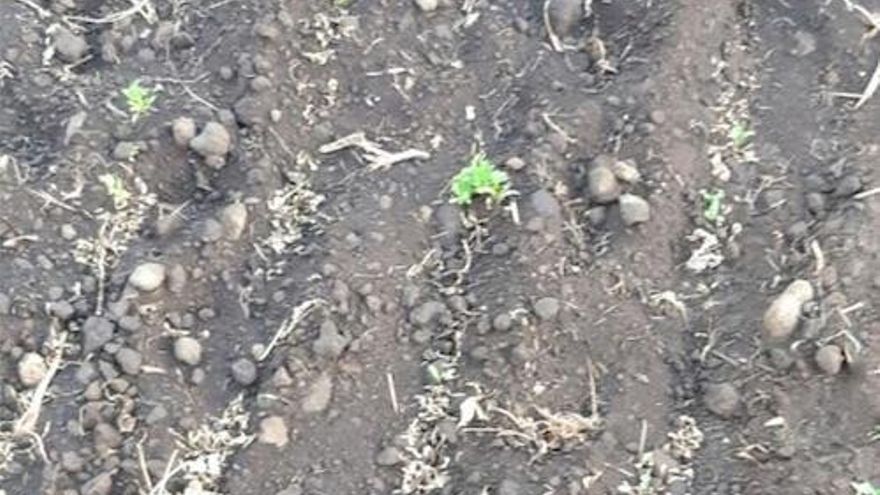 Cultivos en la finca de Jairo López afectados por agua de riego salinizada, en Icod de los Vinos (Tenerife).