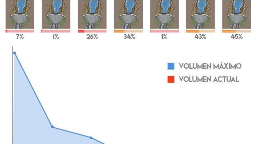 Algunas de las grandes presas públicas del sur grancanario se encuentran prácticamente vacías, como es el caso de Fataga o Ayagaures, que están al 1% de su capacidad. En Soria, embalse semipúblico con 12.924.960 metros cúbicos de capacidad y 120 metros de altura, está sólo al 0,25% con 32.460 m3 de agua.