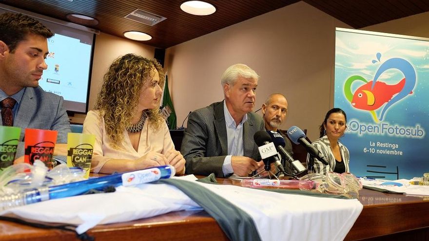 El presidente del Cabildo de El Hierro, Alpidio Armas; la consejera insular de Turismo, Lucía Fuentes; y el director general de Infraestructuras turísticas del Gobierno de Canarias, Fernando Miñarro; presentaron el 23º Open Fotosub Isla de El Hierro, el abierto internacional de fotografía submarina que este año se celebrará del 6 al 10 de noviembre en aguas de La Restinga.