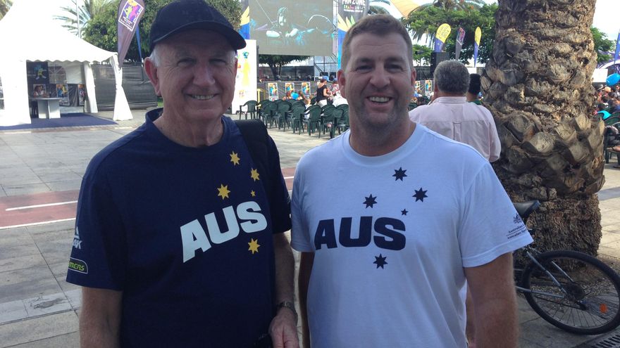 Buscando un poco de sombra también nos topamos con dos de los entrenadores asistentes del equipo australiano. Trevor Gleeson y Adrian Hurley vienen llegando de Las Canteras y destacan primeramente el buen tiempo reinante que contrasta con el invierno que está viviendo ahora mismo Australia. Sobre la actuación de su equipo esperan poder acabar la fase de grupo en una buena posición para afrontar con garantías la siguiente fase en Barcelona.