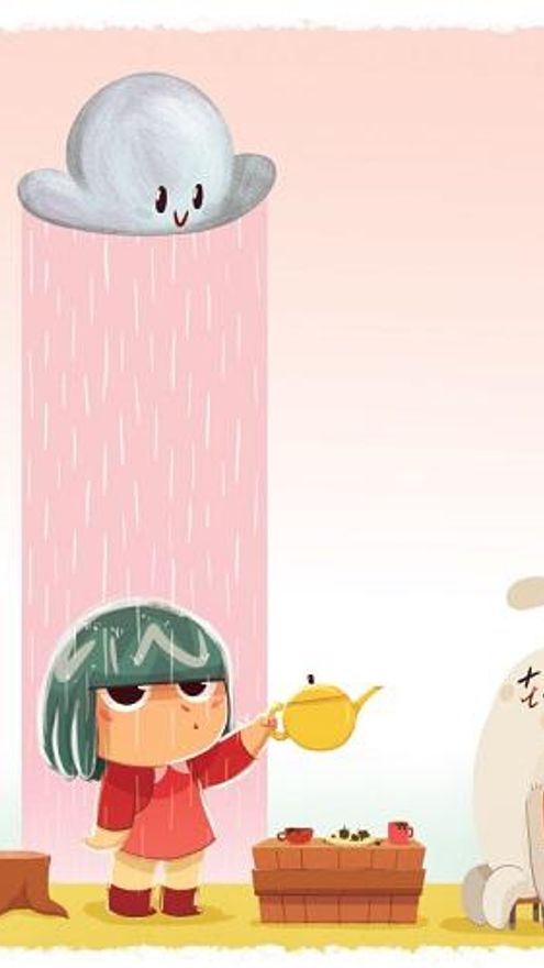 Con un estilo “cartoon”, muy expresivo y colorido, la autora Núria Aparicio nos invita a ver, y leer a través de sus imágenes, una curiosa relación de amistad que se establece entre una niña y una nube, por extraño que esto pueda sonar. Además, somos capaces de seguir las diferentes emociones que exhibe la niña ante, primero, el problema que se le plantea -la nube la sigue- y, después, las soluciones que encuentra.
