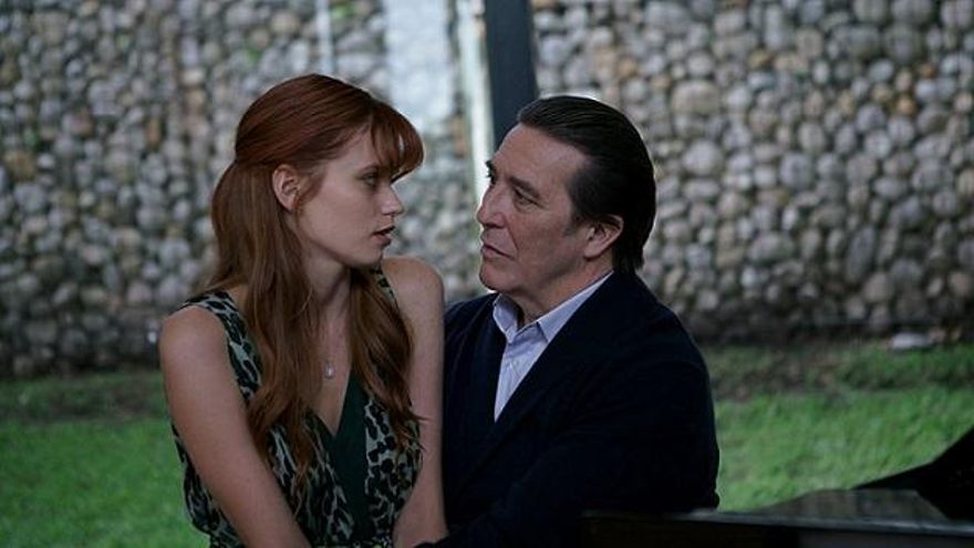 Henry (Ciarán Hinds) y Elizabeth (Abbey Lee) en una secuencia de la película Elizabeth Harvest © 2019 AG Studios, Automatik Entertainment, Motion Picture Capital & Voltage Pictures.