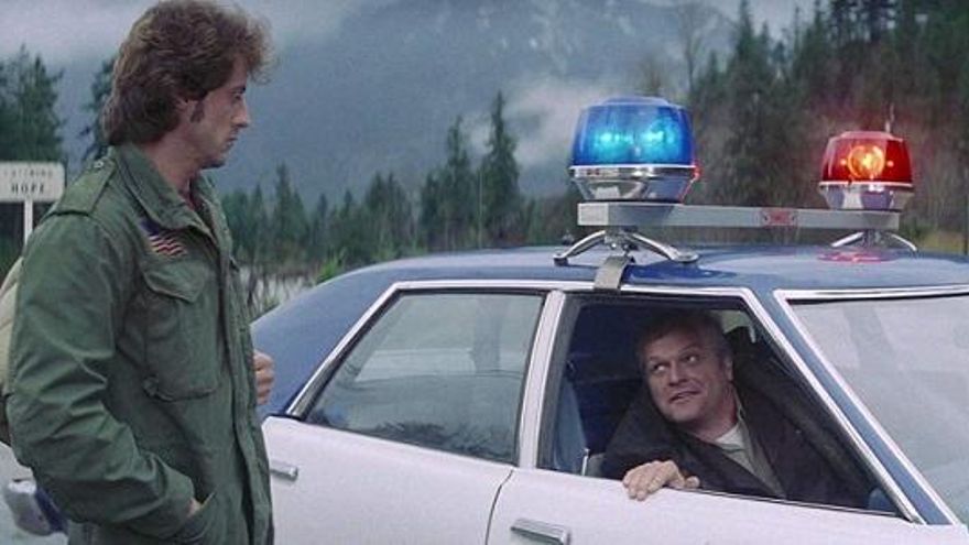 Teasle (Brian Dennehy) y John Rambo (Sylvester Stallone) en First Blood (1982)