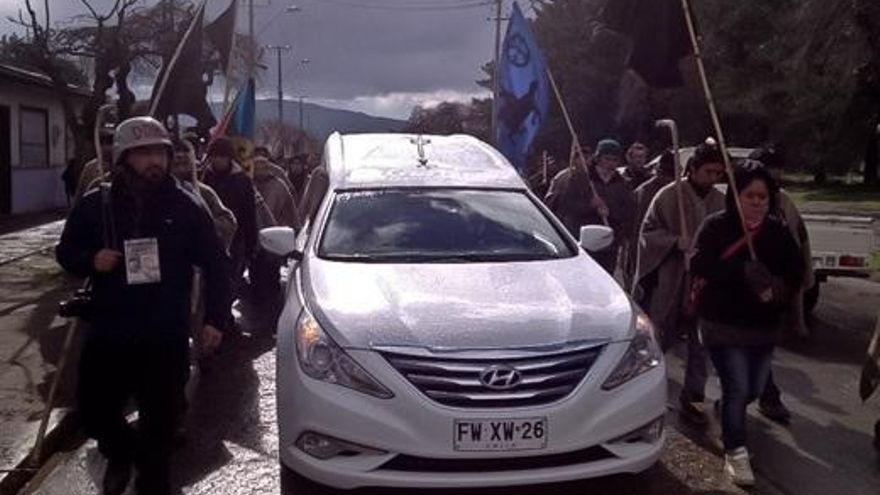 Miembros de la etnia mapuche acompañan el coche que transporta el cuerpo de Rodrigo Melinao. Werke.cl