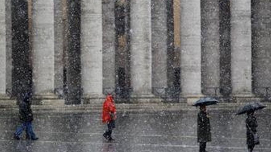 La ciudad de Roma se despertó hoy con nieve, algo que no sucedía desde hace cinco años. La nevada ofreció insólitas estampas de los principales monumentos artísticos de la ciudad, como la Fontana di Trevi, el Coliseo, el Vaticano o la Plaza de España.