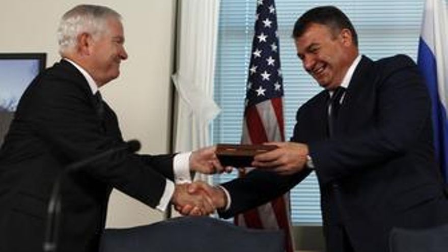 El ministro de Defensa ruso, Anatoli Serdiukov, y el secretario de Defensa norteamericano, Robert Gates, firmaron este miércoles un memorándum para fomentar la cooperación militar entre los dos países.