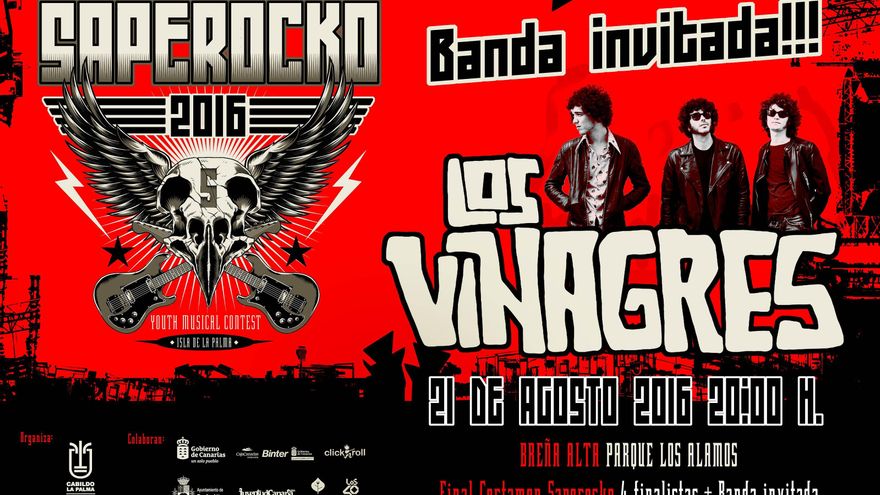 La diversión estará asegurada con el final de fiesta que correrá a cargo de Los Vinagres, la banda palmera de rock volcánico que allá por el año 2012 ganara el Saperocko y hoy en día, afincados en Madrid, son una banda de éxito consagrado en el circuito, participantes en multitud de festivales y elogiados por la prensa especializada.