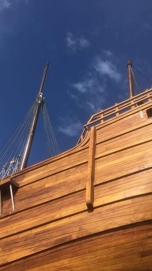La reproducción palmera de la Santa María, realizada en hormigón, fue un empeño de Armando Yanes Carrillo, quien fue presidente del cabildo, constructor naval y heredero de la histórica Casa Yanes, el armador que había encargado a los hermanos Arozena, Sebastián y Fernando, la construcción de La Verdad.
