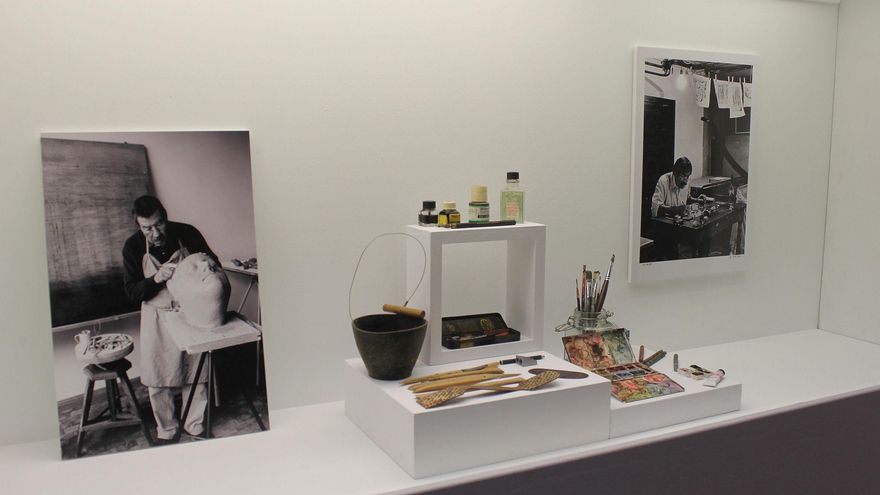 La exposición recoge 86 pinturas, en su mayoría acuarelas, dibujos y grabados, y 15 esculturas de la Fundación Günter und Ute Grass, además de 12 dibujos de la Colección Würth Collection, recortes de artículos de trabajo del Fondo Blaauvboer-Rodríguez Castillo de la Biblioteca Insular Pérez Vidal.