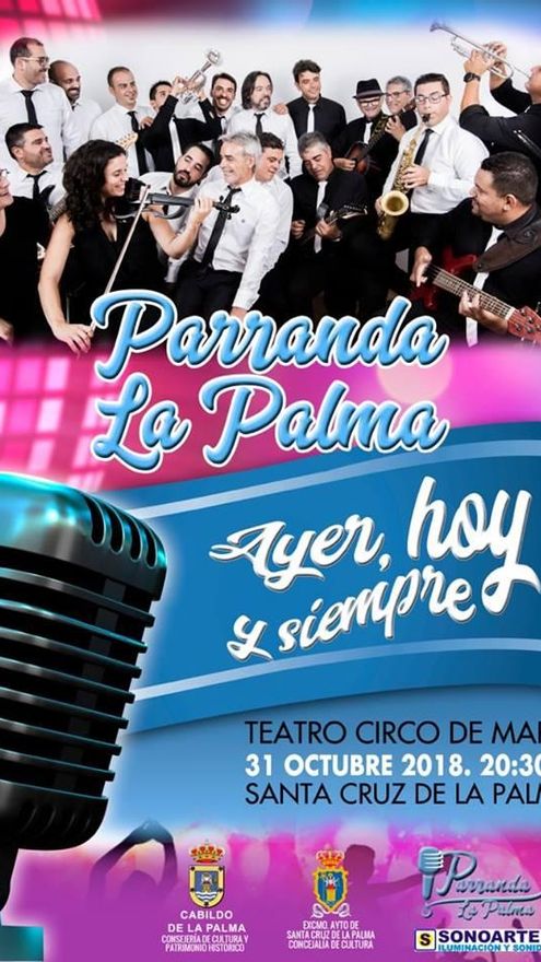 Con 22 componentes entre músicos y cantantes, Parranda La Palma interpretará en vivo y en directo este homenaje a la música de Ayer, Hoy y Siempre, un proyecto que ha sido renovado ampliamente desde que se estrenara por primera vez en el verano de 2016 y que aún guarda sorpresas para esta ocasión especial, por lo que los asistentes podrán disfrutar de las nuevas versiones del grupo capitalino que conforman, a buen seguro, la banda sonora de nuestras vidas.
