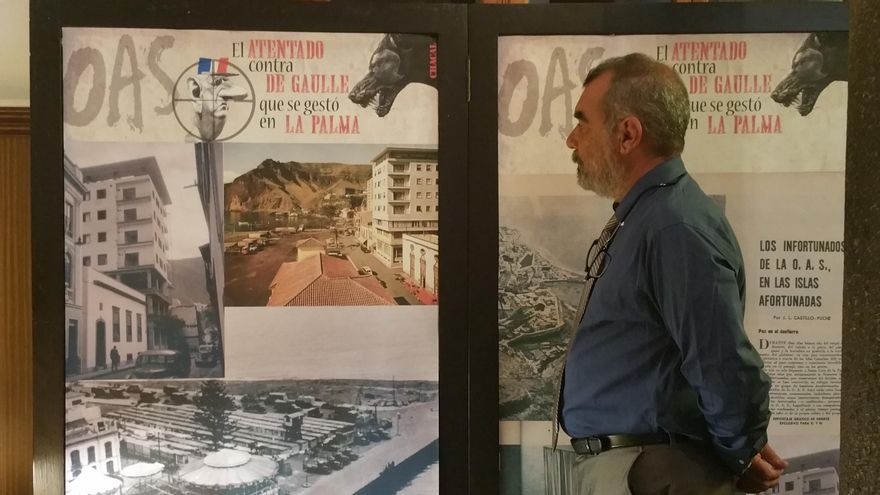 La exposición El atentado contra De Gaulle que se gestó en La Palma puede contemplarse en el Salón Noble de la Sociedad La Investigadora de Santa Cruz de La Palma hasta el próximo 30 de julio. La muestra fue inaugurada el pasado viernes por el periodista y escritor Luis Ortega Abraham.