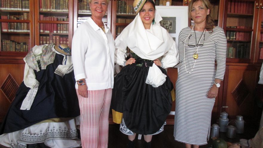 El traje típico corto de la diseñadora Sol Brito Lorenzo, que generó polémica cuando lo dio a conocer en 2013, no es ninguna ‘modernidad’, supone el rescate de una vestido tradicional que está documentado en fotografías de los años 1920 y 1927 depositadas en el Fondo Antiguo de la Sociedad Cosmológica de Santa Cruz de La Palma, en cuyo salón noble ha presentado este viernes la exposición ‘Traje corto de La Palma. Ayer y hoy’, que podrá visitarse hasta el próximo 19 de junio. “Este traje fue una idea mía, porque veía que las niñas en las romerías se vestían normalmente de campesinas, no de magas, y que les resultaba muy incómodo y les daba calor, como me comentaba una hija que tengo adolescente”, ha explicado en el acto de presentación de la muestra, en el que reconoció que “quise cambiar el traje, pero en ese momento no estaba documentada, y como hubo tanta polémica, me fui al Cabildo y estuve mirando el libro que se editó sobre vestimenta tradicional; en la páginas 266 encontré un vestido semicorto, y entonces decidí dirigirme a La Cosmológica, y su equipo de investigación, que me ha ayudado muchísimo, localizó documentos gráficos que confirman que el traje corto existió en los años 1920 y 1927”. “Aunque no fue ese mi objetivo inicial, ahora he constatado que estoy rescatando un vestido que estaba olvidado”, ha subrayado. Además, añade, “a la gente joven hay que ofrecerle comodidad; la mujer no tiene por qué ser un esclava de la vestimenta, porque no lo era en los años 20”.