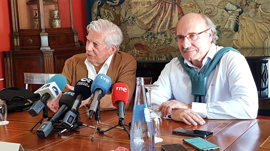 El escritor Mario Vargas Llosa, Premio Nobel de Literatura, resumió sus 24 horas de estancia en La Palma, acompañado de su actual pareja, Isabel Preysler, en una frase: “Hay que acercar la literatura a las estrellas”. “Ha sido una visita breve, pero de enorme significación e importancia para mí y para Isabel”, aseguró este martes en un encuentro con los medios de comunicación que tuvo lugar en el Hotel Hacienda de Abajo de la Villa y Puerto de Tazacorte, y en el que estuvo acompañado por el director del Instituto de Astrofísica de Canarias (IAC), Rafael Rebolo. “Era la primera vez que venía a La Palma y espero que no sea la última; la isla es preciosa, con una geografía muy peculiar”, dijo.