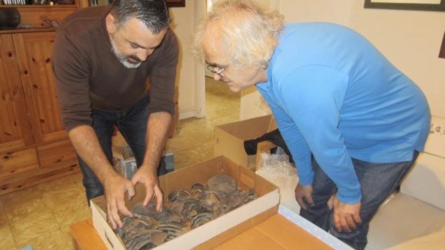 A finales de enero de 2017 Domingo se trasladó a La Palma para organizar y seleccionar los restos que formarían parte de la presentación a los medios de comunicación, que tuvo lugar en el Museo Arqueológico Benahoarita el 7 de marzo de 2017. Durante casi tres semanas pudimos comprobar como Domingo iba, poco a poco, haciendo emerger vasijas de montoncitos de fragmentos de cerámica aparentemente informes. Lo más asombroso de todo es que, después de 20 años guardadas en bolsas y cajas, recordaba, con sólo echarles un vistazo, a qué cuenco pertenecían unos trocitos ínfimos de barro cocido con apenas unas rayitas de decoración.