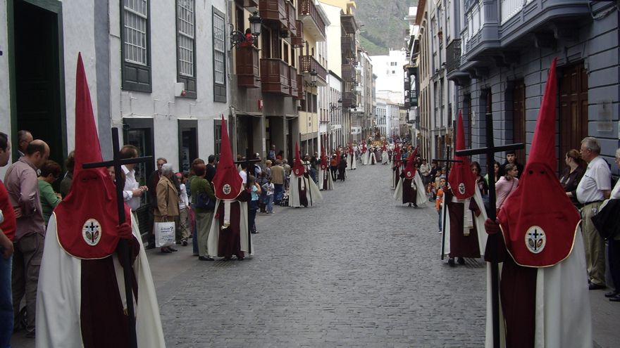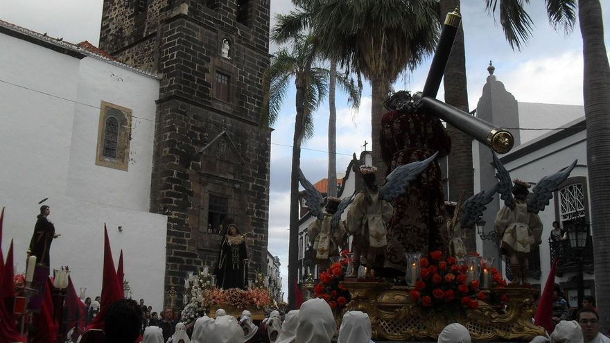 El Nazareno, después de descender lentamente por las escalinatas de su templo, desde la plaza de Santo Domingo asciende la calle de San Telmo, baja la del Sol y luego las empinadas escaleras de la callejuela de Blas Simón o “Cuesta de Matías” (que lleva el nombre del médico Matías de Sáseta, quien durante el siglo XIX ocupara la casona de Blas Simón, sita en dicho lugar) y continúa por la Calle O’Daly hasta la Plaza de España, donde aguarda unos instantes. Minutos más tarde de hacerlo el Señor, salen las otras dos imágenes y bajan por las calles de La Luz, San Sebastián, Vandewalle y Pérez Volcán rodeando la zona trasera de la parroquia de El Salvador, hasta llegar a la Avenida de El Puente. Allí se detienen.