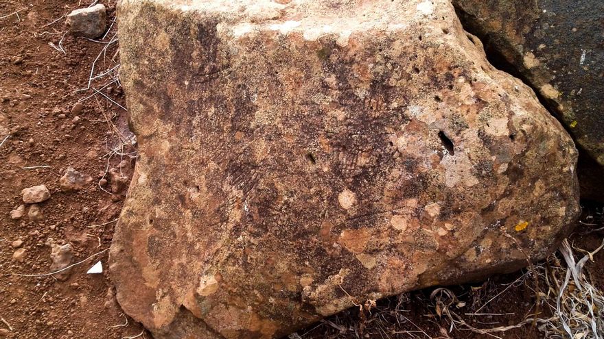 Hace poco más de un mes aproximadamente, algunos miembros de la Asociación Iruene La Palma realizaron una actividad en la naturaleza por las cercanía del barranco de Fernando Porto (Garafía) para hacer fotos nocturnas teniendo la suerte, al cruzarse en nuestro camino, de advertir la presencia de una roca de medianas dimensiones que contenía una peculiar sinfonía de trazos muy finos lineales en dos de sus caras, combinando reticulados y otras composiciones que lo hacía único y especial. Fue toda una sorpresa que a la luz de las linternas se nos mostrara tal enjambre de líneas.