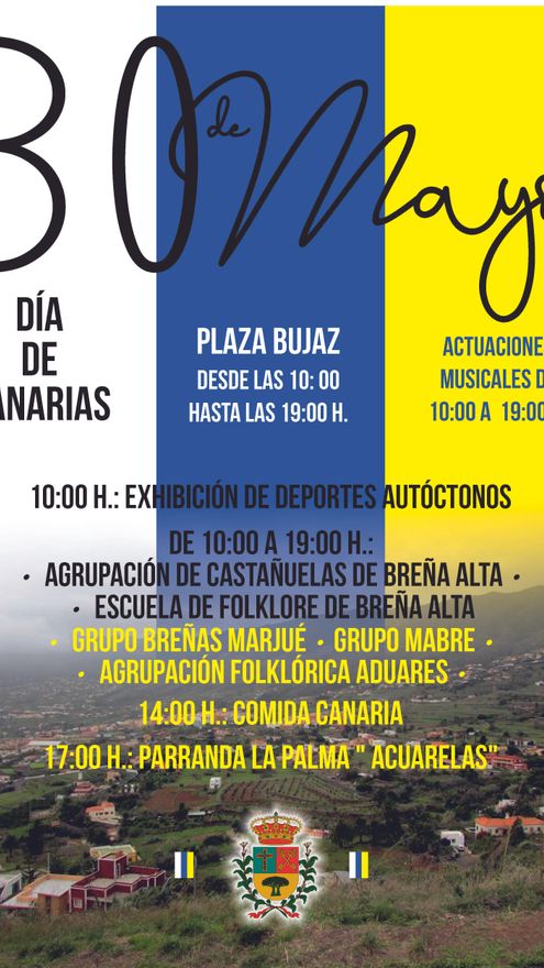 Las actividades previstas para este 30 de mayo en Breña Alta son de libre acceso por lo que desde el propio Ayuntamiento invitan “a todos los vecinos de la Villa y de la Isla a disfrutar con nosotros de este día festivo para los canarios”.