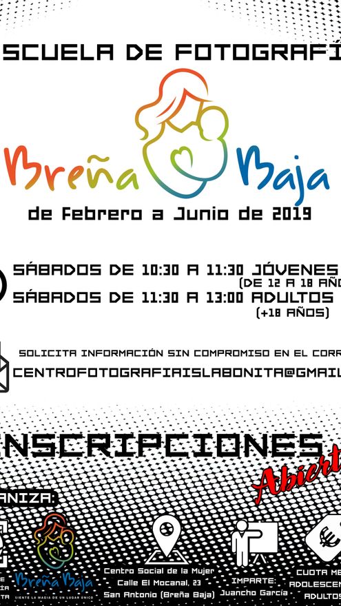 La Concejalía de Cultura, Educación, Artesanía y Participación Ciudadana del Ayuntamiento de Breña Baja y el Centro de Fotografía Isla Bonita organizan a partir del próximo sábado, 2 de febrero, una escuela de fotografía en el Centro Social de la Mujer Efigenia Pérez Concepción situado en el núcleo urbano de San Antonio, se indica en una nota del Consistorio.