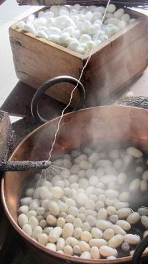 Destaca que de cada capullo “se obtienen 1.000 metros aproximadamente y para una madeja que pesa entre 200 y 300 gramos son necesarios unos 500 a 600 capullos, que pierden una tercera parte de su peso en el proceso”. También resalta que “todo el proceso se realiza artesanalmente” y “se necesitan alrededor de tres personas que a su vez precisan para un kilo de seda en torno a 4.500 capullos”.