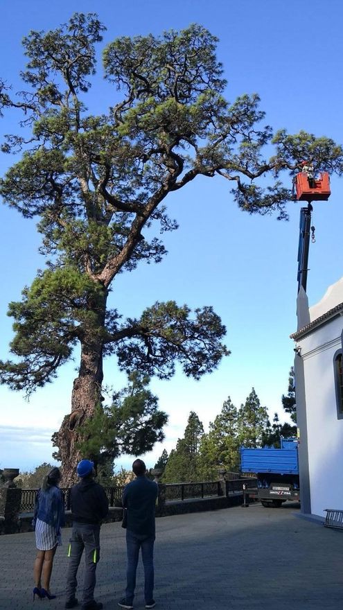 Primeras mediciones del emblemático Pino de la Virgen de El Paso para saber cómo “responde” al tratamiento de naturalización