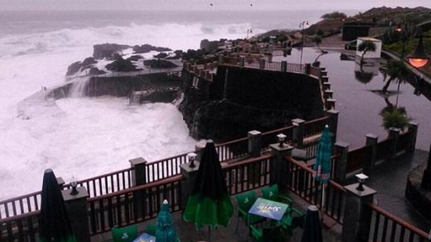 (En la imagen, efectos del oleaje en las piscinas de La Fajana. Foto: Ayuntamiento de Barlovento)