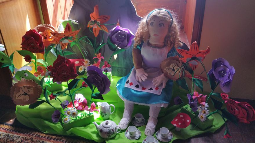 La Real Sociedad Cosmológica de Santa Cruz de La Palma ha organizado con motivo del Día del Libro la exposición El mundos mágico de los cuentos en la que el famoso Mago Merlín guiará a los visitantes en un fascinante viaje a través de los cuentos clásicos y sus legendarios personajes. “Príncipes y ogros, célebres princesas, brujas malvadas, animales asombrosos, se darán cita en nuestra biblioteca para tratar de despertar el interés por la lectura entre los más pequeños y retornar a la infancia a los mayores”, explica la vicepresidenta de la entidad, Rosa Aguado Jaubert, quien invita a la población a que “se deje transportar al universo mágico de los libros”. La exposición puede visitarse hasta el próximo 28 de abril en horario de 10:00 a 20:00 horas. Los personajes que habitan estos días La Cosmológicas están realizados por los miembros de la Asociación de Mayos de San Telmo, a quien Aguado ha expresado su agradecimiento. “Es un guiño a la cultura popular, y es realmente admirable la labor que desarrollan en la confección de mayos para ser disfrutados durante tan poco tiempo”, destacó, e hizo extensivo su agradecimiento al Taller de Costura del Ayuntamiento de Santa Cruz de La Palma, Binter Canarias y las Cosas Buenas de Miguel. Entre los personajes que se exhiben se encuentran Caperucita Roja y el Lobo, la Bella y la Bestia, el Gato con Botas o el Soldadito de Plomo. Una parte de la exposición está dedicada exclusivamente a Alicia en el País de las Maravillas, en la que se exponen varias ediciones del cuento.