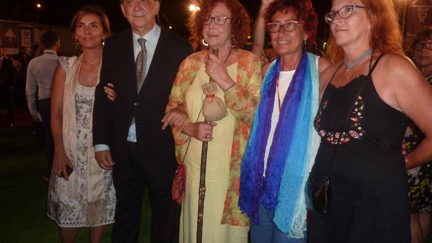 Un momento emotivo de la noche se produjo en la segunda función, cuando la concejal responsable del número, Guadalupe González Taño, entregó un báculo a Concha Capote, esposa del fallecido Luis Cobiella, autor de la música.