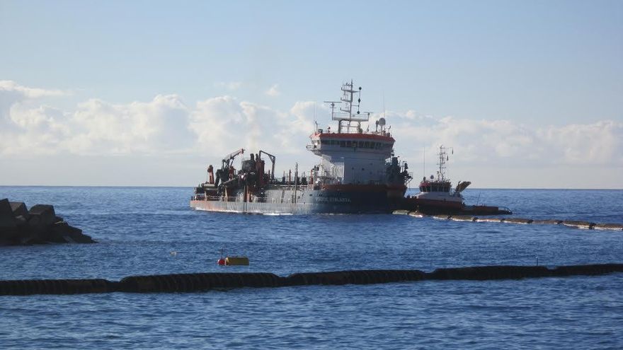 La draga, con base en Holanda, arribó al Puerto de Santa Cruz de La Palma el martes, 7 de octubre. Esa misma jornada inició las pruebas de extracción y reconocimiento de la zona donde, en los próximos dos meses, llevará a cabo la repetida labor.