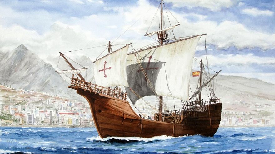 Una acuarela de Francisco Noguerol recuerda en el Museo Naval la estancia de la Nao Santa María