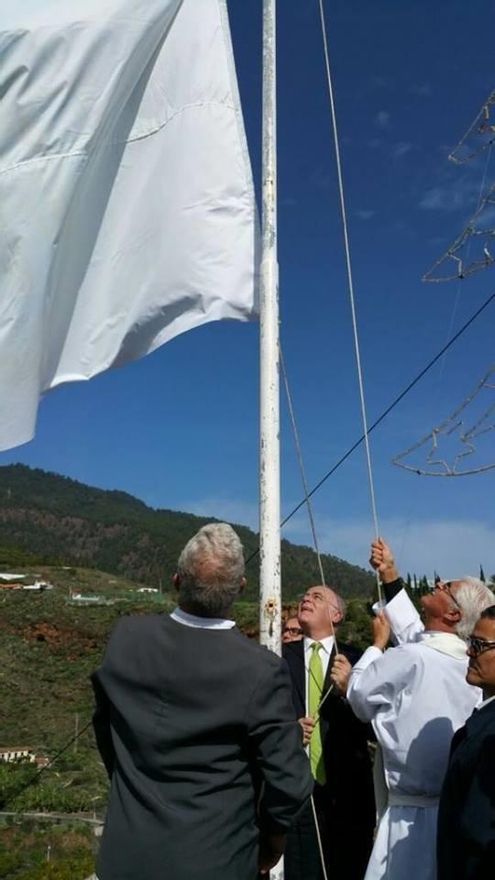Al finalizar la misa, señala el citado medio, acompañados por el grupo de castañuelas de Breña Alta, los miembros de la Cofradía de la Virgen portaron la Bandera de la patrona hasta el morro de su nombre, donde el rector del Santuario, Antonio Hernández, junto con las autoridades presentes izaron la bandera blanca con el anagrama de Las Nieves, al tiempo que repicaban las campanas y, posteriormente, hubo salvas en honor de la Virgen.