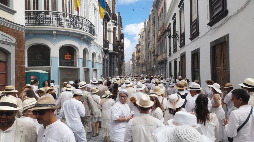 La capital palmera vibra este lunes con la parodia del emigrante rico retornado. Todos los rincones de la ciudad están invadidos por la marea blanca que se divierta sin tregua.