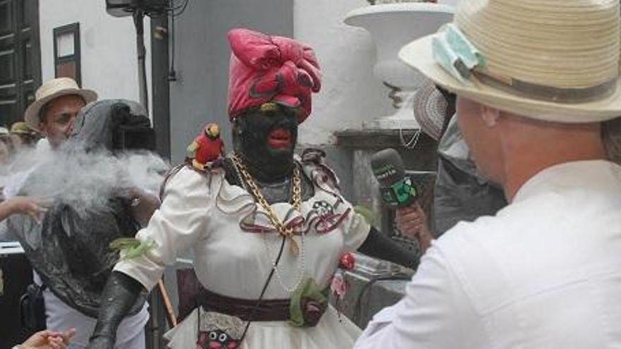 Este lunes, el domicilio de Sosó será tomado por siete cámaras de televisión, incluida una cadena alemana, desde primeras horas de la mañana. En total, 22 personas se encargarán de grabar y retransmitir la transformación de Sosó en la Negra Tomasa. Y una vez que su nuera Nazaret lo maquille y le ayuda a colocarse el elegante vestido, empieza la frenética jornada indiana. “A las once tengo que estar preparado porque me viene a buscar el jeep; nos vamos para el muelle, volvemos para la avenida y luego regresamos de nuevo al puerto cuando llegue el barco”, relata. Y a las 12.15 horas emprende el camino hacia la plaza de España, a donde tiene que llegar “a la una en punto”.