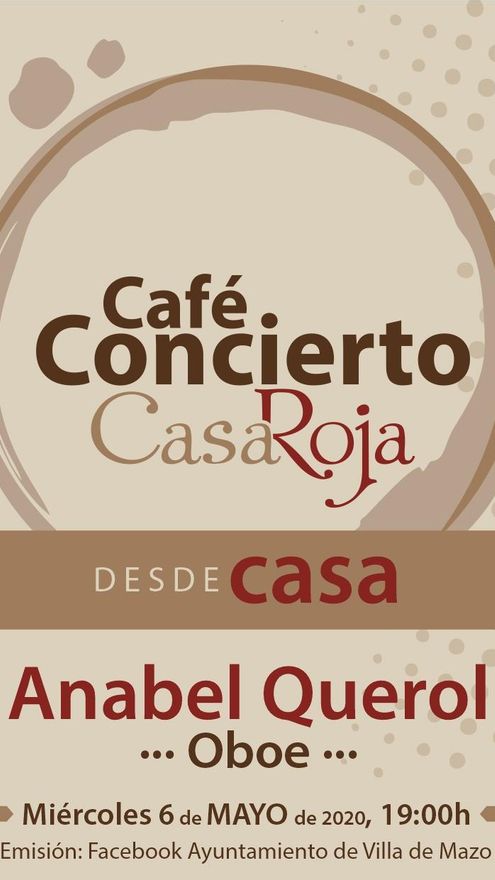 Villa de Mazo continúa llevando la cultura y la música a los hogares gracias al ciclo Café-Concierto desde Casa, se indica en una nota de prensa del Ayuntamiento. En esta ocasión la oboísta Anabel Querol presentará su espectáculo musical el próximo miércoles 6 de mayo, a las 19:00 horas, a través de la página oficial de Facebook del Ayuntamiento.