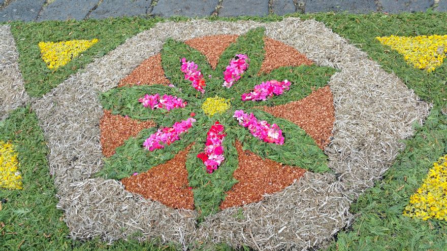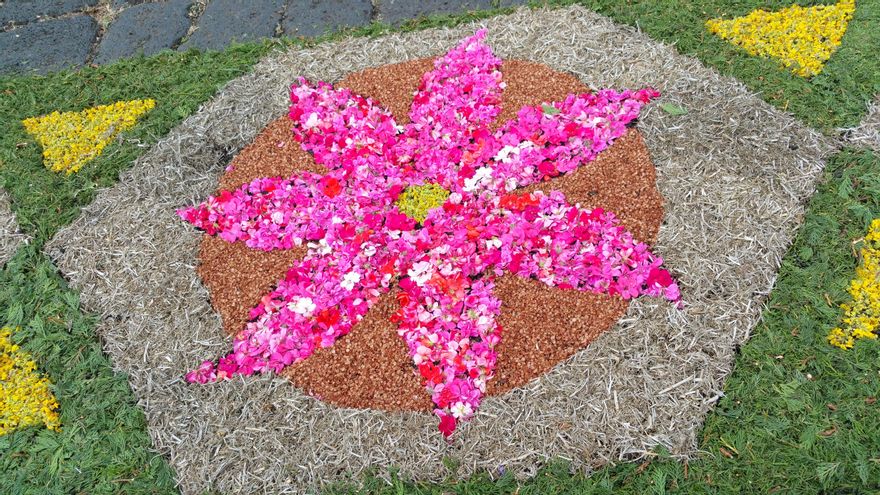 Es el primer año que participa en el Corpus Christi de Villa de Mazo. Mariela Ramos, de 36 años, se ha sumado en esta edición a la confección de primorosas obras que convierten el casco urbano del municipio en un singular museo de arte popular y efímero. “Querían gente joven en el arco de El Pueblo y El Poleal, y decidí colaborar para mantener esta tradición”, ha señalado a La Palma Ahora. Recuerda que esta manifestación artística “está declarada Fiesta de Interés Turístico Nacional, es un símbolo de este pueblo y hay que invitar a los jóvenes a que se incorporen para que perdure en el tiempo”. “Deben coger el relevo; yo ya he incorporado a mis hijos”, subraya.