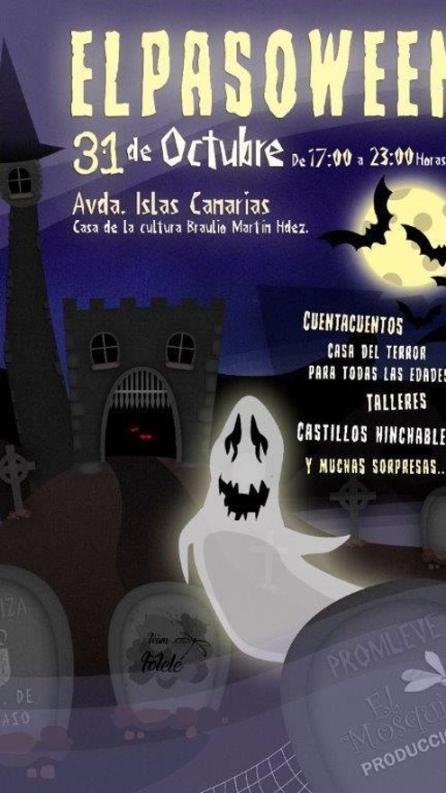 El Ayuntamiento de El Paso, la Asociación Juvenil pasense Team Folelé y El Mosquito Producciones, organizan el próximo 31 de octubre, para celebrar el día de halloween, una serie de actividades para todos los públicos, desde las 17:00 hasta las 23:00 horas, señala el Consistorio en una nota de prensa. El programa incluye “La casa del terror junto a cuentacuentos, talleres, castillos hinchables y muchas sorpresas”. Las actividades se desarrollarán en la Casa de la Cultura Braulio Martín Hernández de la localidad y en la Avenida Islas Canarias.