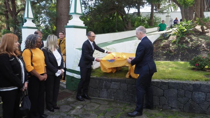 El alcalde de Villa de Mazo, José María Pestana, y miembros de la Corporación municipal han acompañado al embajador de Reino Unido en España al cementerio de San Blas donde se ha rendido homenaje a John Lee y se ha descubierto una placa conmemorativa del aniversario de la aparición del soldado en las costas del municipio.