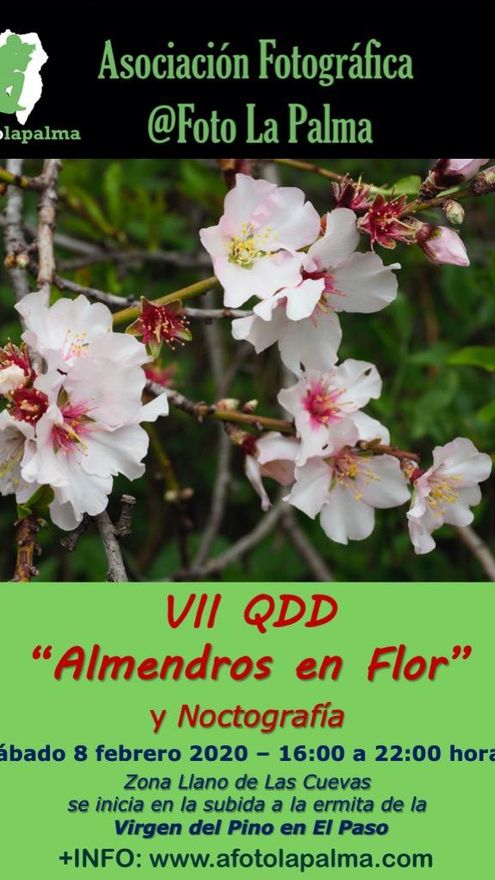 La Asociación Afoto La Palma, un año más, volverá a inmortalizar la belleza de los almendros en flor en la VII Quedada fotográfica. La cita para plasmar esta inundación de pétalos en el campo palmero tendrá lugar el próximo 8 de febrero (sábado), a las 16.00 horas, en la zona del Llano de las Cuevas, en el municipio de El Paso, donde se inicia la subida a la ermita de la Virgen de El Pino.