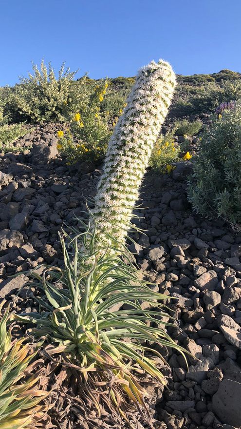 En esta época de sequía y confinamiento han aparecido en las cimas de La Palma ejemplares insólitos de una planta de la Isla única en el mundo. En concreto, en las cumbres de Andrés y Sauces, en una parcela de repoblación, al este del Pico de la Cruz, ha florecido un tajinaste rosado albino y, en las de Tijarafe, varios individuos de este endemismo de la Isla ((Echium wildpretii ssp trichosiphon) con una aberración floral denominada peloria, ha señalado el director-conservador del Parque Nacional de La Caldera de Taburiente, Ángel Palomares, a La Palma Ahora.