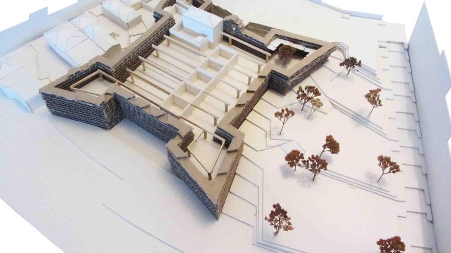 En su actuación, Gara aboga por “causar el menor impacto visual posible, construir con materiales diferentes para no mimetizarse con lo existente e intervenir mínimamente”. “El proyecto se implanta excavando una planta por debajo del nivel actual de la terraza, y así, al entrar en la fortificación no se pierde la forma original”, explica. “En la planta inferior se ubicaría el museo de las fortificaciones, una sala temporal de exposición y un pequeño auditorio; la obra pretende ser lo más respetuosa posible con los muros por lo que ni la estructura del proyecto ni ningún tabique interior se apoyan en éstos”, resalta.