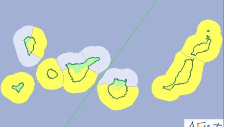 El citado aviso también ha sido activado en El Hierro, La Gomera, Fuerteventura, Lanzarote y La Graciosa y parte de Tenerife y Gran Canarias.