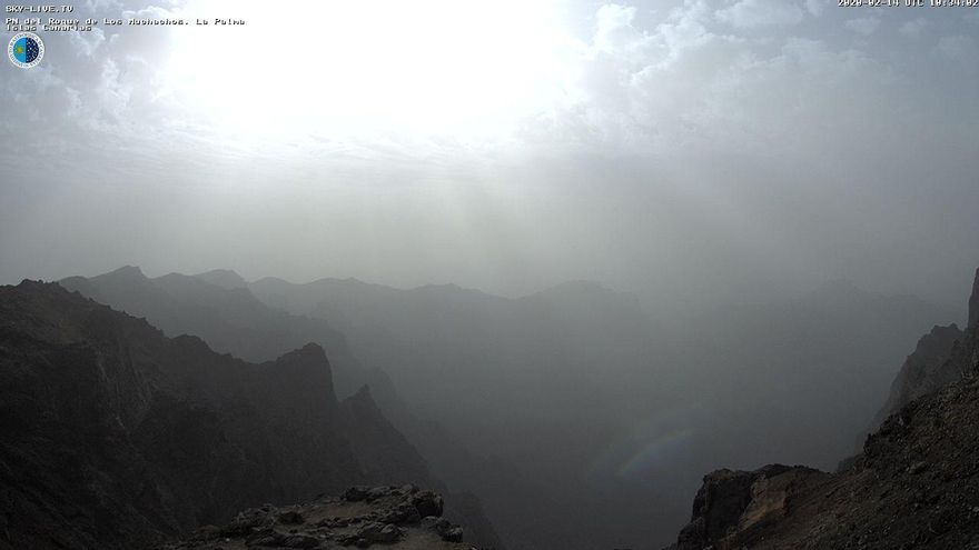 La calima se hace notar este viernes, 14 de febrero, en La Palma. El polvo en suspensión cubre toda la Isla y, sobre todo, en la comarca oeste, dada la densidad de ese velo calimoso, como se puede observar desde el Mirador del Jable, en municipio de El Paso, hace que la visibilidad se reduzca de forma significativa.