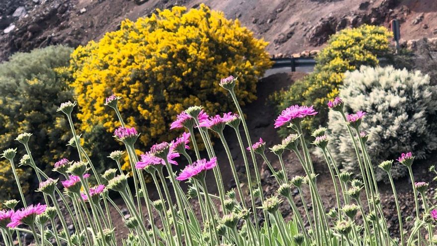 Otras especies, como los tajinastes, tanto rosados como azules, entre otras, lucen asimismo en todo su esplendor y engalanan un entorno único.